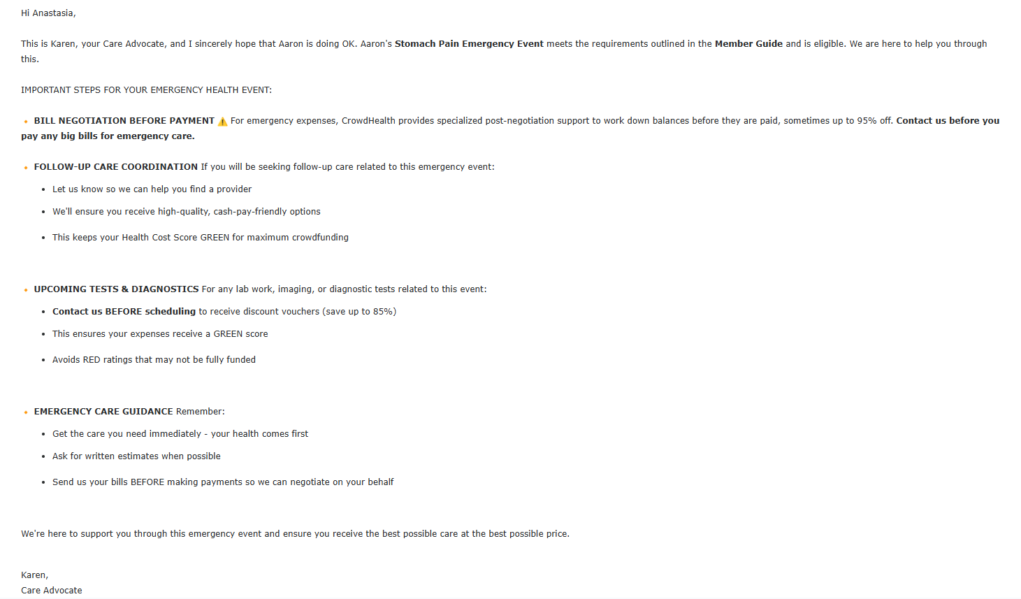 I’ve also been simply FLOORED by the support of the entire CrowdHealth community. I’ve seen cases where something technically didn’t qualify for funding—like a family adopting a child who wasn’t yet legally part of the household. CrowdHealth shared their story in a newsletter, and hundreds of members donated directly to the family (through Venmo) so that they could cover the medical bills anyway. Isn’t that TRULY INCREDIBLE?