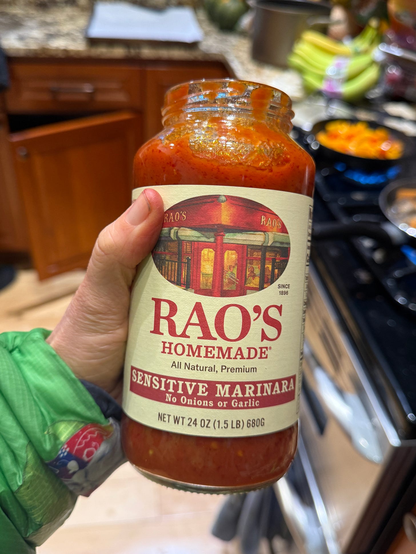 That being said, my love for pizza has not dwindled — I’ve just had to get a bit more creative about it. Recently, I discovered this allium free sauce from Rao’s, and it’s surprisingly delicious! It’s not technically a pizza sauce, but I’ve been making pizza with it for the last few weeks, and it’s really delicious, and a great substitute.